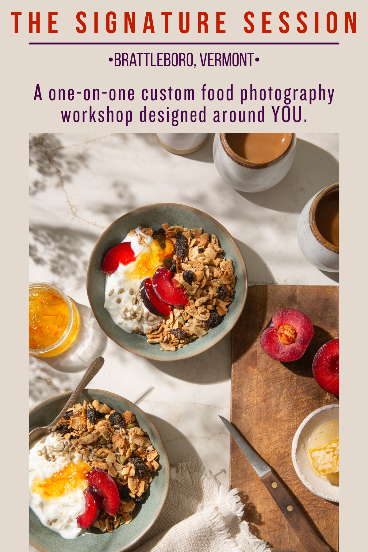 This isn’t your average workshop—and it’s definitely not one-size-fits-all. This is a one-on-one, full-day, private food photography intensive held in Clare's Vermont studio, designed entirely around your goals.